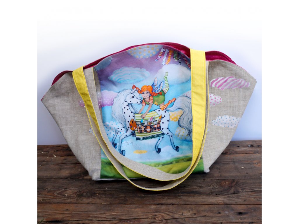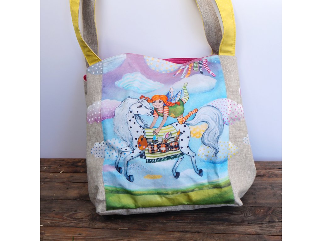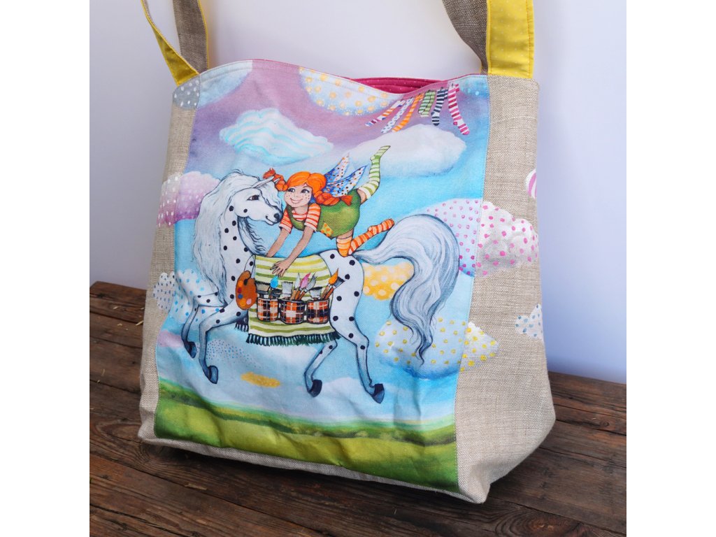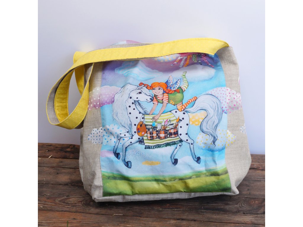 taška má na přední straně muj obrázek vytištěným na plátně a je domalováná kvalitním textilními barvami.