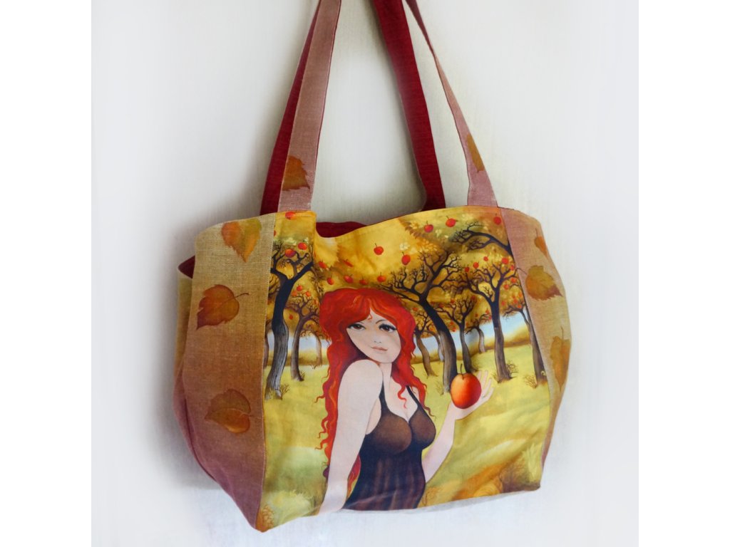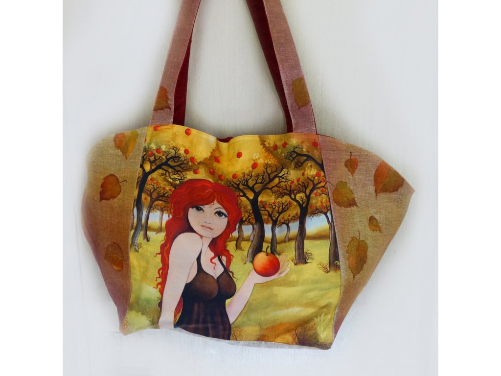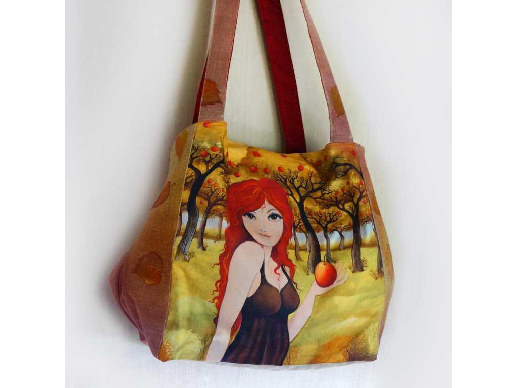 taška má na přední straně muj obrázek vytištěným na plátně a je domalováná a dostínovaná kvalitním textilními barvami.