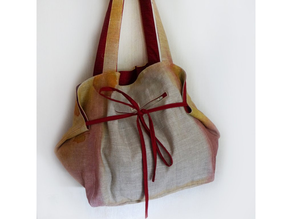 taška je veliká rozměry jsou: v nejširším místě 63 cm, dole 34 cm, vysoká 37 cm, hluboká 17 cm, je možno jí stáhnou dvěma "tkaničkami" na svázání - čímž se ohnou rohy a taška je pak menší. Nebo stáhnout šnůrkami uvnitř a vznikne takový vak.- taška je velmi variabilní