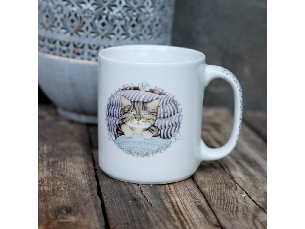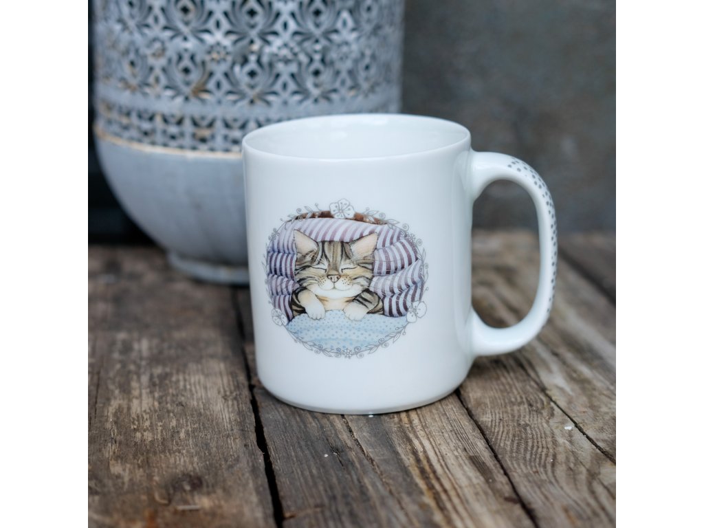Větší hrníček 400 ml, výška 10 cm, průměr uprostřed 9 cm - autorský porcelán ( na spodní straně má značka)