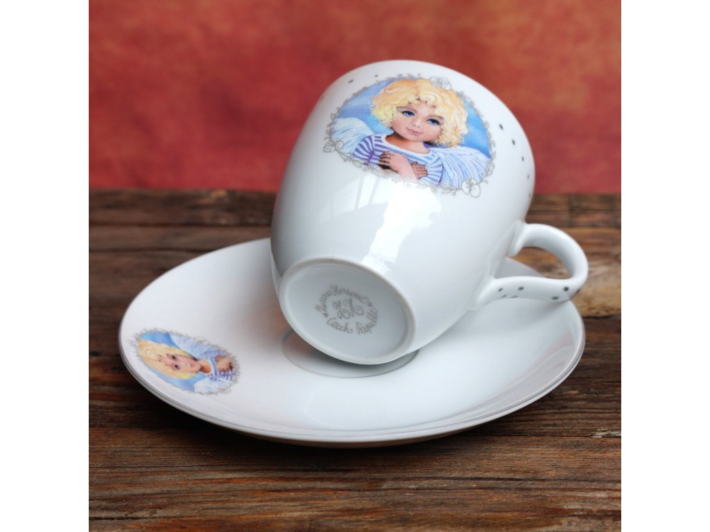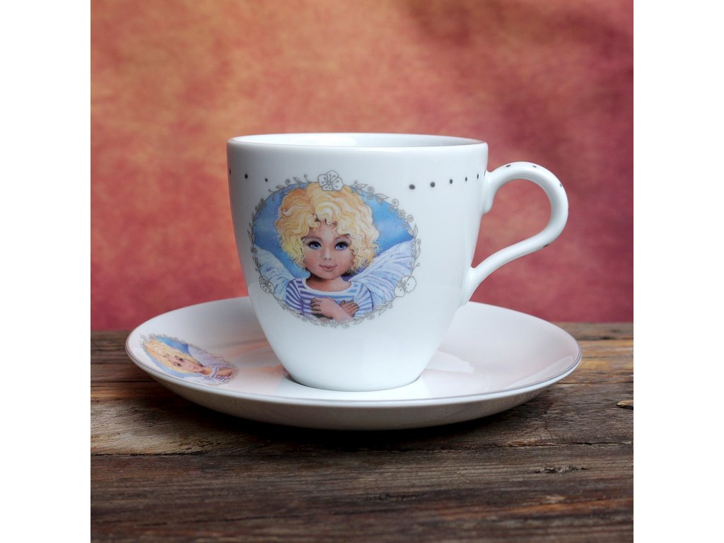 Větší hrnek na kávu s podšálkem - Andělíček