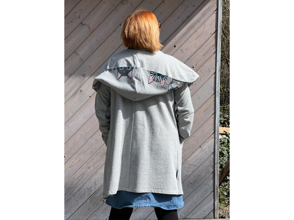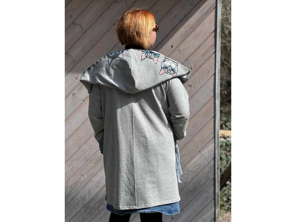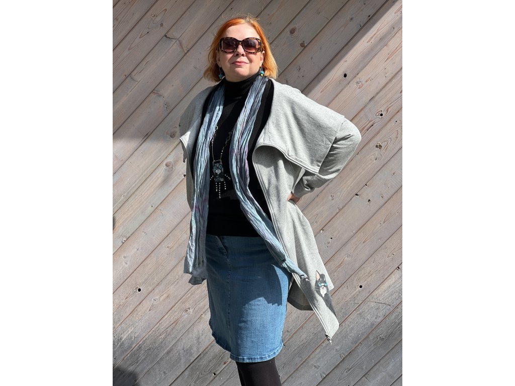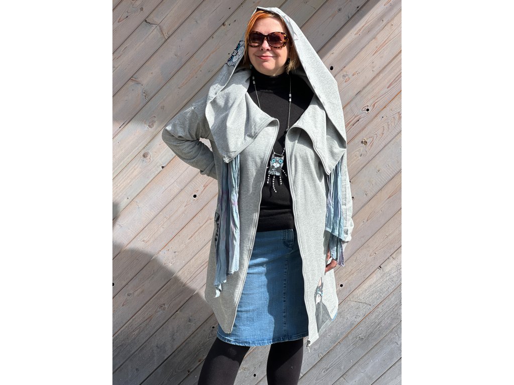 Moc hezká, kvalitní a zajímavá mikina s velkou kapucí, kterou lze nosit přes ramena. Vysoko rozepínací dvoucestný zip. Kapsy ve švu. Postranní rozparky.