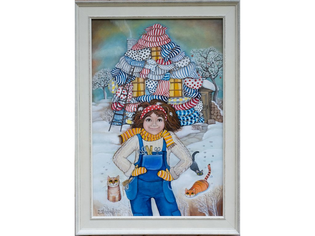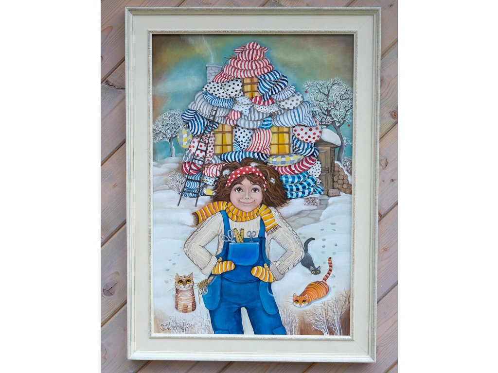 obraz jsem malovala moc ráda a je takový dost osobní, neb žiji na chatě, která zateplená nebyla a dlouhou dobu jsem to řešila různými ucpávkami kudy táhlo.. letos jsem zateplila správně a chata se mi změnila na pohodlný domeček kde je krásné teplo.