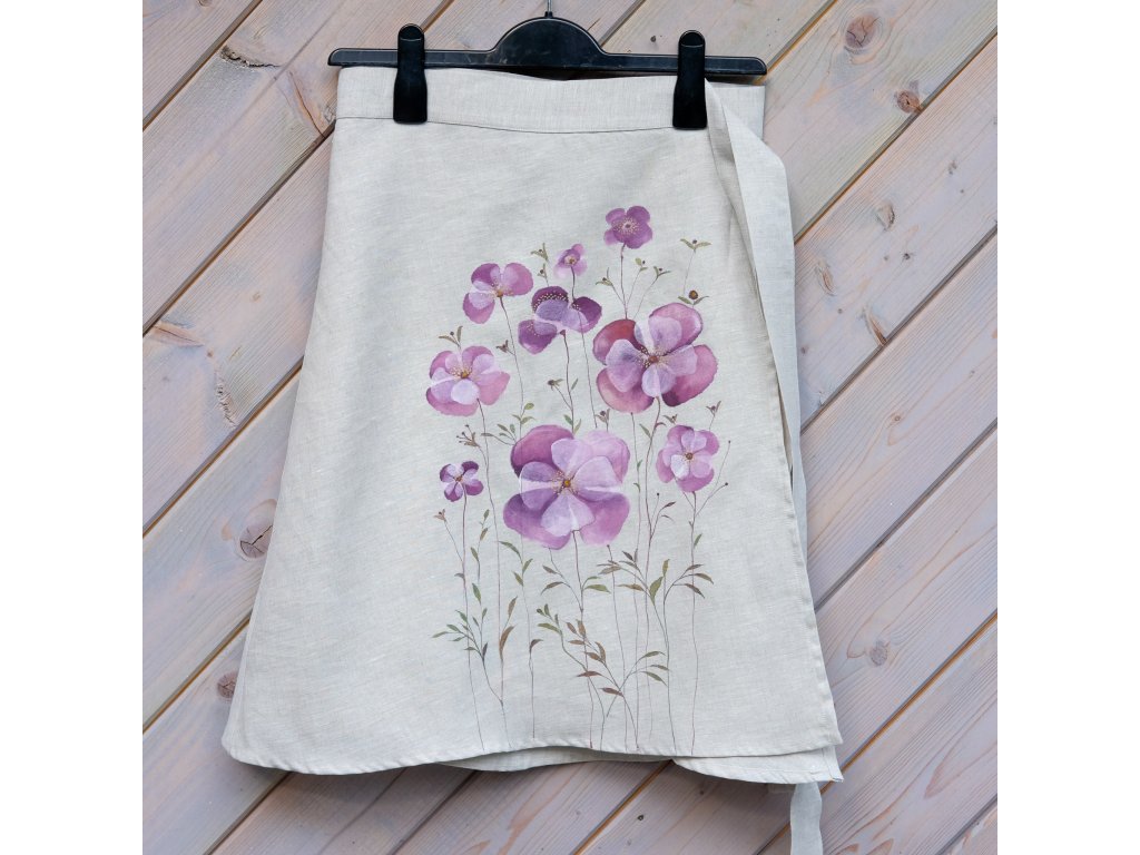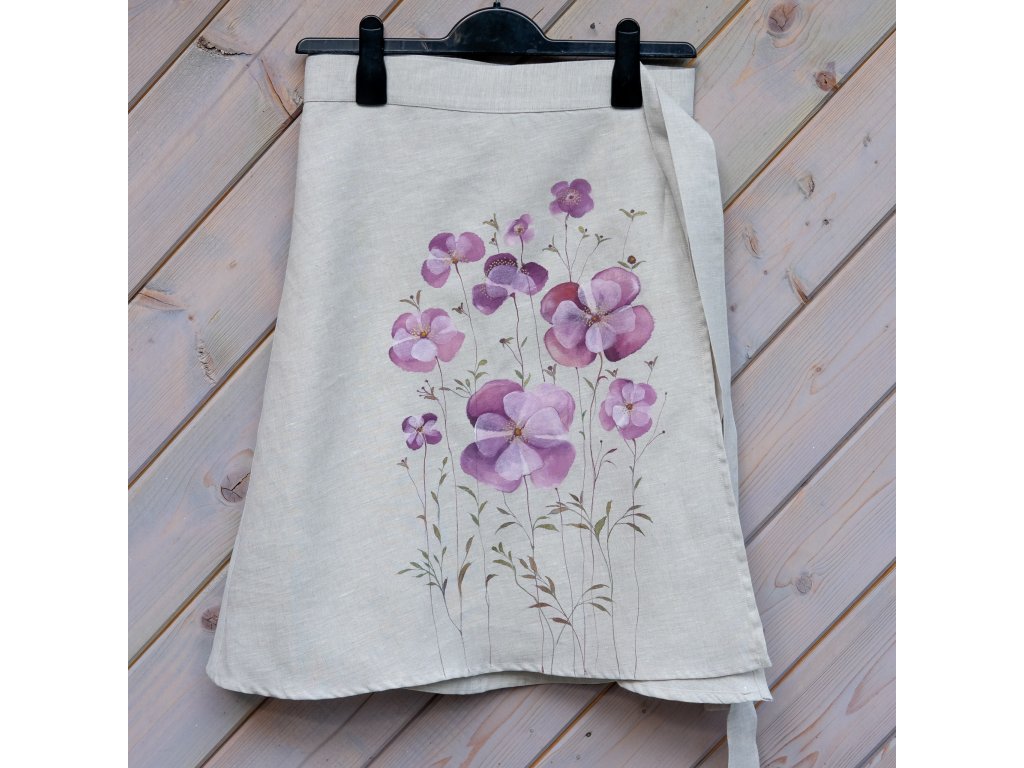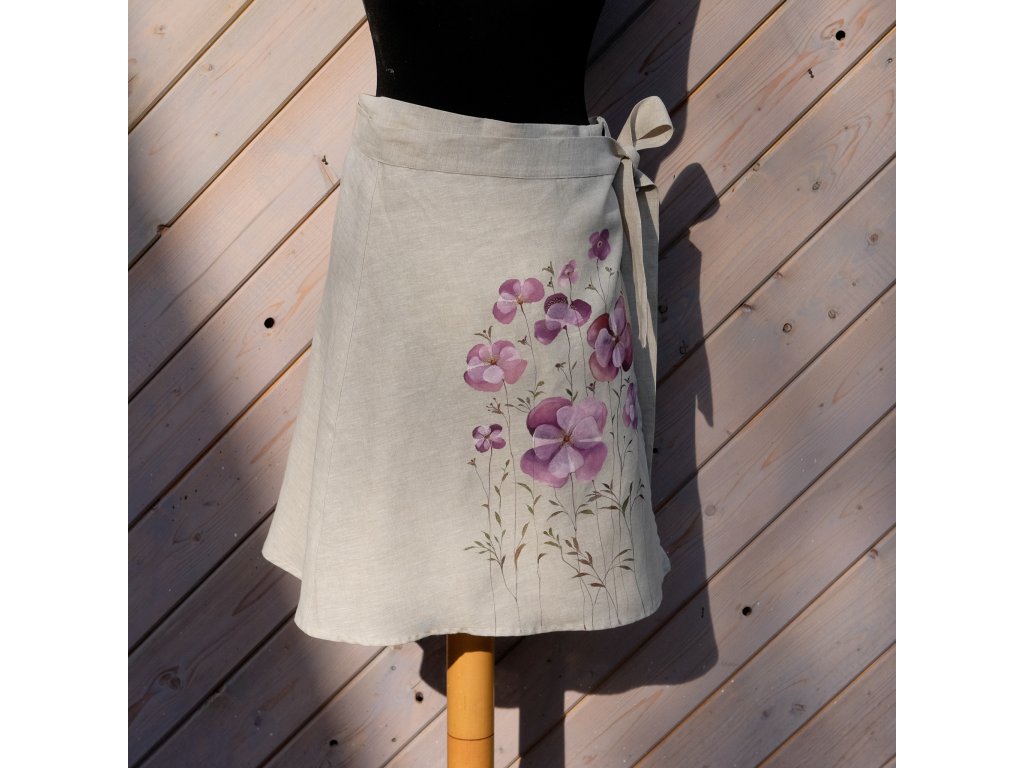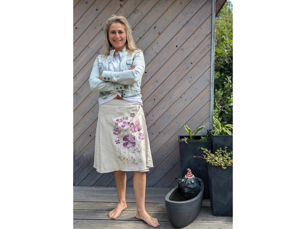 Novinka lněná zavinovací sukně originál malovaná.
