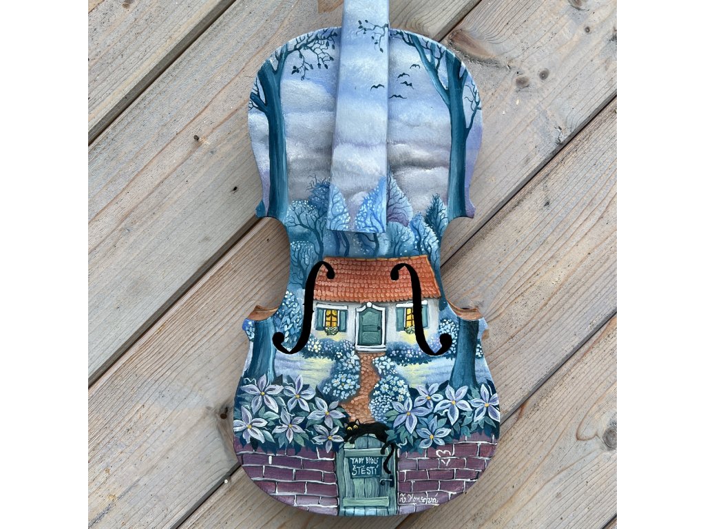 Olejomalba na starých houslích, na housle maluji již dlouho jsou již k hraní nepoužitelné a tak jim dávám druhý život. Sehnat housličky je stále těžší..