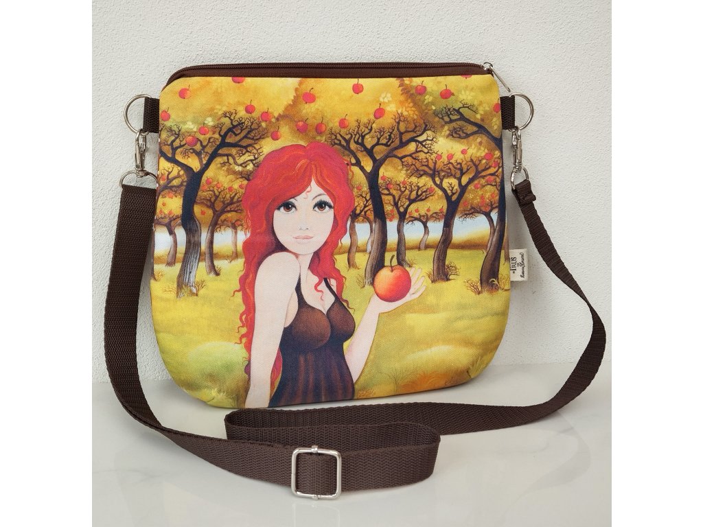 rozměry: 24 x 22 cm. Zadní strana je z americké designové látky. Uvnitř je kapsa na klíče a mobil.