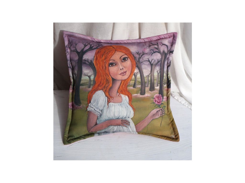 ze zadní strany bavlna barevně ladící s obrázkem. Kvalitní náplň -duté vlákno. Prát na 40 stupňů.